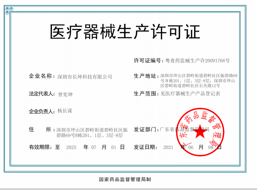 歡迎來(lái)到深圳市長(zhǎng)坤科技有限公司官網(wǎng)! 粵深食藥監(jiān)械經(jīng)營(yíng)備20151166號(hào) 粵食藥監(jiān)械生產(chǎn)許20091768號(hào)